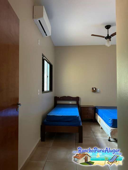 Ar condicionado e ventilador de teto em todos os quartos.