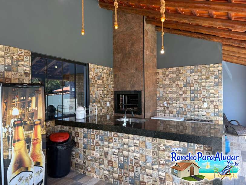 Cervejeira, churrasqueira em alvenaria, fogão de 2 bocas e pia