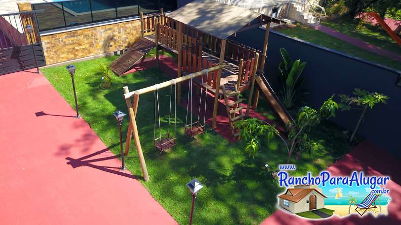 Rancho aconchegante, varanda gourmet com área para churrasco, 5 suites, piscina, quadra de areia, local agradável e aconchegante para você curtir seu fim de semana, férias e feriados.